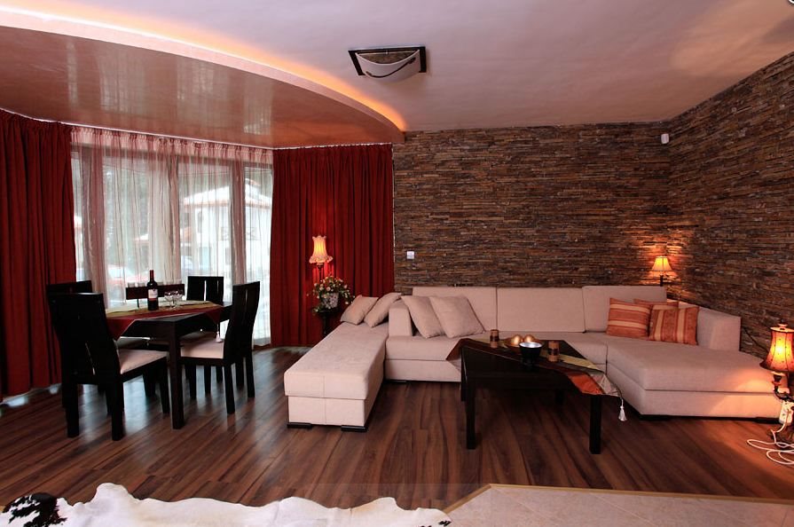 Up the traditional wooden staircase, there are 2 shower rooms with WCs (1 is en suite). There are fitted wardrobes; each bedroom has its own balcony. There is a covered patio. you can sit and watch the beautiful sun-sets. The ski chalet is ideal for either families or groups. This is an area of outstanding natural beauty.
